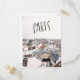 Beautifully hand lettered Paris postcard featuring a skyline view of Paris, France.