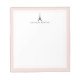 Add a touch of Paris style to your desk! Simple and chic, our personalized memo notepad features your name or monogram topped by a small, hand drawn Eiffel tower silhouette illustration in black. A thin border of pastel blush pink adds a soft pop of colour.