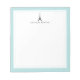 Add a touch of Paris style to your desk! Simple and chic, our personalized memo notepad features your name or monogram topped by a small, hand drawn Eiffel tower silhouette illustration in black, framed by a pastel sea green border.