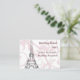 These wonderful place cards make excellent wedding reception table markers so your guests know exactly where to be seated. They are part of the matching set of invitations and labels with the fresh pink scrolls with the Eiffel Tower drawing.
