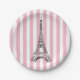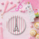Enjoy our Eiffel Tower illustration pink stripe paper plates for your child’s party.