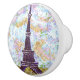 This ceramic drawer knob is called, "Eiffel Tower Pointillism", by me, Kristie Hubler, extracted from my painting, "Paris Eiffel Tower inspired pointillism landscape". Each dot when clustered makes up an overall colour using "colour reflection"from the colours of objects, buildings, people, and the landscape around them. The technique was popularized by Georges Seurat, who also has a painting by the same name, only my inspiration comes from photos of Paris, France, the Eiffel Tower, and my visit inside the Paris Las Vegas casino and resort, seeing the interior shop facades. Its the Eiffel Tower, the sky, clouds, and grass. Love is in the air! The sky is pastel colours of pinks, sky blue, lilac,gold and mint green, with yellow greens for grass, and various shades of grey and black mixed with blue violet iris and brown for the Eiffel Tower.