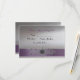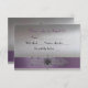 This fancy response card (rsvp) with Paris flair incorporates a silhouette of the Eiffel Tower, sparkly vintage floral trim, and purple and silver metallic shine. Shown on basic paper, but you can upgrade to match your invitations.