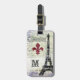 A distressed collage design featuring iconic French images, vintage sheet music, and vintage French handwriting. Customizable on both sides. Great for luggage, backpacks, camera bags, or any place where a nice ID tag is needed.