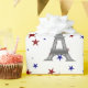 Celebrate Bastille Day and Paris with the Eiffel Tower and red and blue stars.