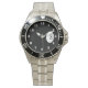 Has heft and feel of expensive stainless steel quartz watches. Good band with safety catch. I removed links, which is easy because engraved arrows show direction to push the linking pins. As always by this seller, the image (a railroad logo) is a perfect reproduction of my emailed image, and is precisely spaced and aligned.
