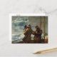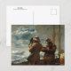 A fine art postcard with the painting, Eight Bells (1886), by the American artist Winslow Homer (1836-1910). Two men using a sextant on a stormy sea off the Maine coast.