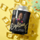 Eighteen gold coloured style effect script text with key to the door black can cooler. Personalize these stubby holders with two photos of your birthday girl turning 18, one on each side (for past and present), plus add your own name or message. Ideal for a 18th birthday party or surprise girls eighteen years event. Other years and matching items are available. © Original design by Sarah Trett for www.mylittleeden.com on Zazzle.