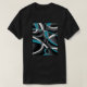 Eighties Blue White Grey Line Curve Pattern On Bla T-Shirt