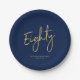 Eighty | Gold & Navy Lettering 80th Birthday Party Paper Plate