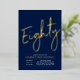 Celebrate your special day with this stylish 80th birthday party foil invitation. This design features a chic gold foil text "Eighty" with on a navy blue background. You can choose real foil stamp colour(Gold, Silver, Rose gold). More designs and party supplies are available at my shop BaraBomDesign.