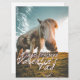 Einen schönen Valentinstag mit schauendem Pferd und handgeschriebenen Grüßen auf der Vorderseite der Karte. Die restlichen Flächen sind frei verfügbar.