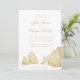 This destination wedding invitation features a drawing of the famous arch at Lands End in Cabo San Lucas, Mexico at the tip of the Baja peninsula. . All the important wedding details can be personalized. Colors include a golden sepia two tone graphic with coordinating text.