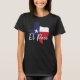 El Paso, Texas flag map design women's black T-Shirt. This design features "El Paso" in an elegant script, calligraphy style font in white with light grey outline on top of the map of the state that's filled with the flag of Texas. This hometown T-Shirt is a great way to show that you are proud to be from El Paso, TX.