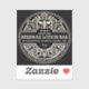 Classy black and taupe label with ornate 19th century French filagree design and 14th century British heraldic bee.