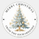 Elaborate Victorian Tree in Blue Merry Christmas Classic Round Sticker