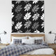 Elder tree leaf silhouette in a surface pattern design with grey and white detail on a black background.
