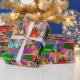 This wrapping paper has pictures of Eleanor all over in the form of gifts under the Christmas tree.