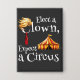 Make a bold statement with this striking rectangular pinback button, featuring a clever satirical design that says it all. Against a sleek black background, the phrase "Elect a Clown, Expect a Circus" stands out in bold, high-contrast lettering.