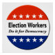 Election workers, also called poll workers, election clerks, election judges or election officials, are essential to ensuring that the voting process runs smoothly and accurately on election day. Whether volunteer or paid, election workers deserve our respect and support, especially in these challenging times. They do it for democracy and to preserve your constitutional right to vote.