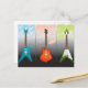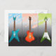 Gorgeous electric guitars in three different shapes in vivid blue, orange and green with grunge swirls and splats overhead. A gradient fade background really makes this design shine! Perfect for any guitarist or music lover.