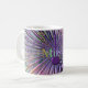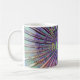 Electric Guitar Music Explosion Mug. Psychedelic rays, golden notes, purple guitars and rainbow music,