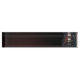photography closeup of an electric guitar in warm brown wood colors on a black background.