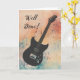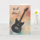 With a bold silhouette and a vibrant mix of colour and rhythm, this design celebrates the excitement of an electric guitar performance. Set against an abstract watercolor background in rich oranges and cool teals, swirling music notes and staff lines bring dynamic energy. Perfect for congratulating a guitarist on a rock recital, showcase, or music event.