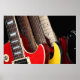 Poster of a closeup of four different electric guitars.