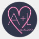 Electric Love Neon Pink Heart & Monogram Classic Round Sticker