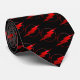 Electric Red Armani Lightning Bolt On Black Satin Tie by Billy Badass Original Designer Neckties.