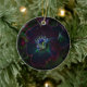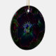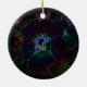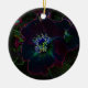 What a dramatic pattern this holiday ornament has! This electric rose is outlined in deep, rich colours of red, blue, magenta, yellow, green and purple. The black background adds to the magical, mysterious feeling. Won't this look beautiful hanging from your Christmas tree?