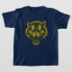 A shirt with the face of a tiger made with lightning bolts. A very fierce and wild animal.
