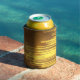 Electric yellow loops on a can cooler