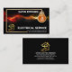 A faux copper electrical circuit frame is powered by a red electrical lightning that lights up a bulb with repair tools inside. Just beside the bulb stands your prestigious name. Near the base of the card are your business name and contact details with a gold "letter-e" electrician logo you can use.