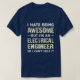 I hate being awesome but I'm an Electrical Engineer so I can't help it humourous expression in white and pale yellow distressed uppercase lettering.