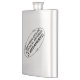 The product is a good size and came exactly as it was pictured. The lid is not attached to the flask, which could be dangerous on drunken nights... The print came out surprisingly well and looks very sharp. Would definitely recommend.