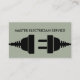 Modern simple electrician business card template in a bold and simple two side design with graphic image of an electrical cord and plug with your business name featured on the front and your contact information laid out on the flip side. Created for an electric contractor or independent electrician service.