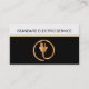 Classy electrician business cards that include a template design with image of a gold looking electrical cord with plug in a modern design with your name or company name on the front, with your contact and business information on the second side with two side printing included. Designed for an electrical service, home electric repair, or electric contractor.
