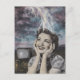An electrifying retro style collage of a woman, a tv set, and lightening AI generated art