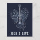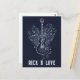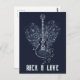 This dark blue postcard design features a sketch of an electro-guitar placed in front of a heart made of musical notes. There is a customizable message "rock n love". This design is great for musick and rock & roll lovers.
