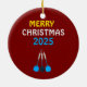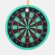 An electronic dart board image is printed on the front of this ornament. On the reverse side is and image of three darts with the words "Merry Christmas" along with the year.