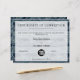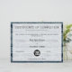 Modern printed circuit board certificate of completion. Colour: navy.
