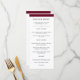 Ce menu de mariage élégant et stylé présente un texte noir chic sur fond blanc, bordé de marsala.