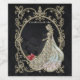 Elegance in gold and black. Captivating composition that combines elegance and mystery. The focus is on a woman in a flowing dress, her silhouette glowing in brilliant gold against a deep black background. The raven symbolizes mystery and intelligence and reinforces the mystical atmosphere of the design. Nearby blooms a red rose, whose vibrant colour represents passion and beauty. A combination of darkness and light, elegance and mystery