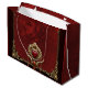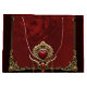 Elegance in red lustre with an ornate heart. The frame itself is artfully designed and decorated with intricate gold motifs, including floral patterns and ornate embellishments. These golden elements lend the overall look a touch of opulence and sophistication. A heart-shaped emblem is surrounded by ornate gold ornaments. The heart symbolizes love and affection.