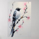 This captivating painting showcases a beautifully rendered bird perched delicately on a slender, ornamented branch. The bird’s head features a striking black and white pattern, adding a bold contrast to the soft blend of grey and white feathers that cover its body. The adorned branch enhances the composition with subtle natural details, inviting the viewer to pause and appreciate the quiet beauty of the scene. A harmonious blend of realism and artistic expression, this piece brings a sense of calm and connection to nature, making it a perfect addition to any serene or nature-inspired space.