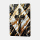 A ceramic pattern featuring a striking black and white marble design adorned with intricate gold accents, exuding sophistication and luxury.