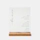 This elegant bar menu design exudes a sophisticated and minimalist style, perfect for a wedding reception. The clean layout features an understated color palette with soft grays on a crisp white background, creating a timeless and refined atmosphere. The typography is modern yet graceful, enhancing the overall sense of elegance. Ideal for couples aiming to convey a chic and polished vibe at their special event, this menu seamlessly blends functionality with aesthetic appeal, ensuring it complements any wedding decor effortlessly.