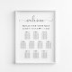 Elegant downloadable wedding seating chart poster for up to 10 tables featuring "welcome" in a chic script with swashes, "Find Your Seat" in classic serif typography, your names and wedding date joined together by a heart and the table numbers and guest names in simple modern typography. Select the digital download option to edit with last minute changes and print locally.